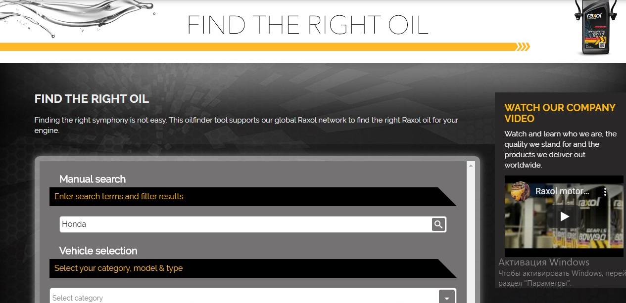 Atrast sev piemērotāko motoreļļu RAXOL ir ļoti viegli, vienkārši ievadot meklēšanas parametrus meklētājprogrammā.